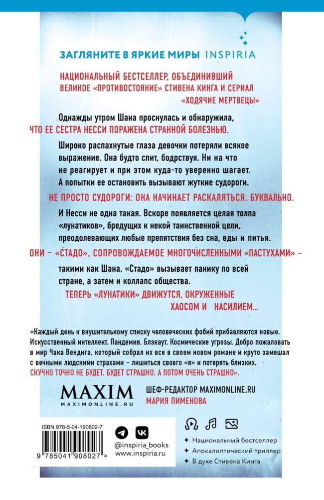 И Несси не одна такая. Вскоре появляется целая толпа «лунатиков», бредущих к некой таинственной цели, преодолевающих любые препятствия без сна, еды и питья. Они — «стадо», сопровождаемое многочисленными «пастухами» — такими как Шана. «Стадо» вызывает панику по всей стране, а затем и коллапс общества. Теперь «лунатики» движутся, окруженные хаосом и насилием…