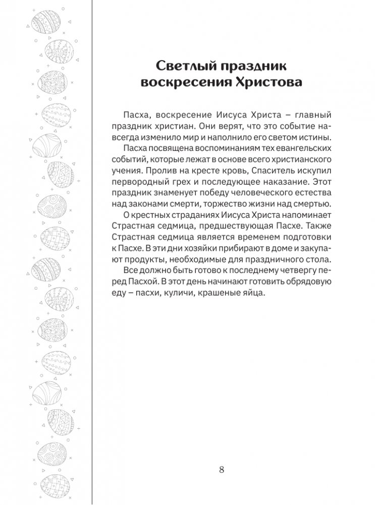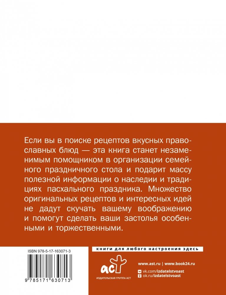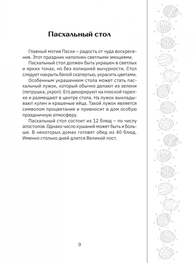 Если вы в поиске рецептов вкусных православных блюд — эта книга станет незаменимым помощником в организации семейного праздничного стола и подарит массу полезной информации о наследии и традициях пасхального праздника. Множество оригинальных рецептов и интересных идей не дадут скучать вашему воображению и помогут сделать ваши застолья особенными и торжественными.