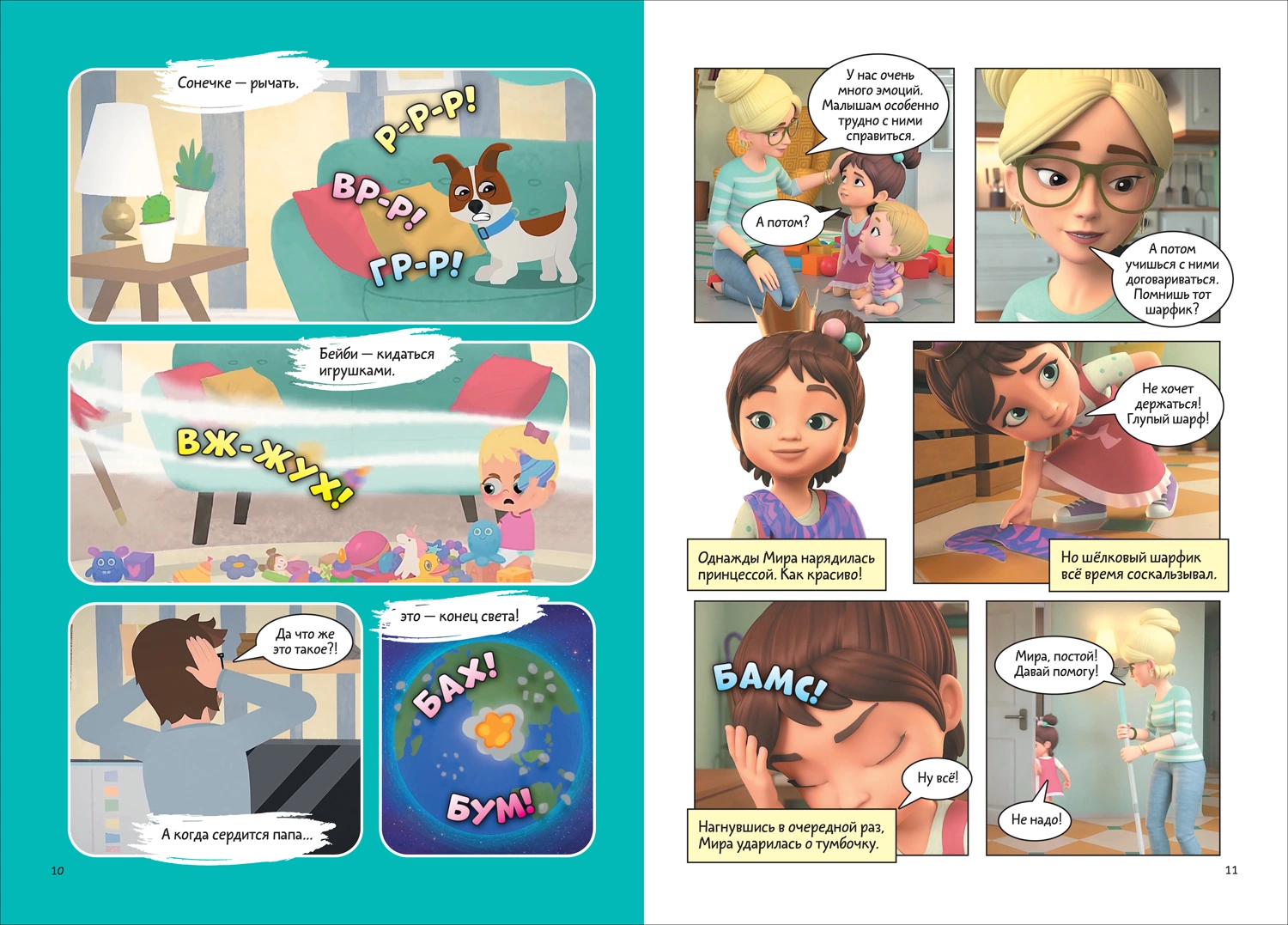 Любимый мультсериал — теперь в формате комиксов! Как и все дети, брат и сестра Гоша и Мира познают мир, играют, иногда ссорятся и попадают в трудные ситуации: дома, в школе или во дворе. Что делать, если тебя обижают? Как справиться со злостью? Почему плакать — совсем не стыдно? Как научиться общаться и завести новых друзей? На эти и другие важные вопросы Мире и Гоше помогают ответить мама и папа. А комментарии психолога к каждой истории помогут вам вместе с ребенком разобрать проблему, проговорить важные моменты и обсудить, как действовать в сложной ситуации.