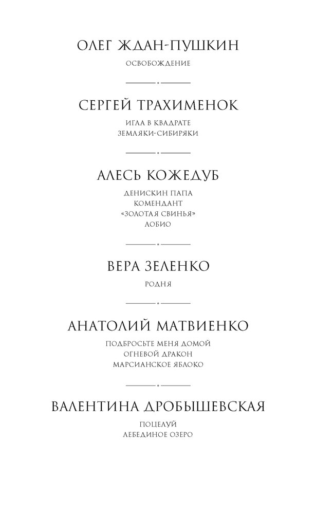 Новая книга из серии «Сучасная беларуская літаратура» включает рассказы шести современных прозаиков. Небольшие произведения показывают, что у каждого автора свой, особенный взгляд на окружающий мир. Писатели не замахиваются на то, чтобы одним произведением разрешить глобальные социальные конфликты, но заставляют задуматься о том, как приоткрыть сложный внутренний мир хотя бы одного человека.