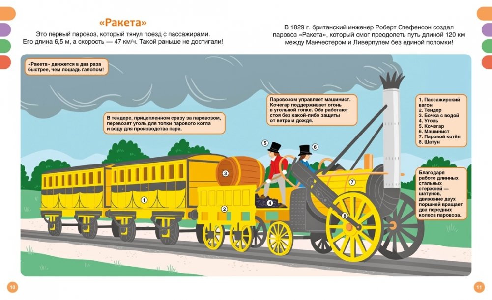 Эта книга расскажет об истории поездов и устройстве современного железнодорожного мира. Юные читатели узнают, как работают вокзалы и депо, как укладывают рельсы и какими будут путешествия на поезде в будущем. Ещё в книге представлены самые необычные и волшебные поезда (даже Хогвартс-экспресс!), а также составы-рекордсмены, способные развивать огромную скорость. В книгах серии – только самая актуальная информация и самые современные иллюстрации! И это ещё не всё: в конце каждой книжки собраны увлекательные задания и игры, которые помогут весело провести время и повторить изученное.