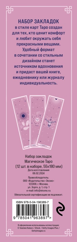 Набор закладок в стиле карт таро создан для тех, кто ценит комфорт и любит окружать себя прекрасными вещами. Удобный формат в сочетании со стильным дизайном станут источником вдохновения и придадут вашей книге, ежедневнику или журналу индивидуальность.