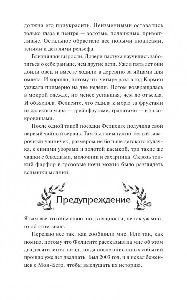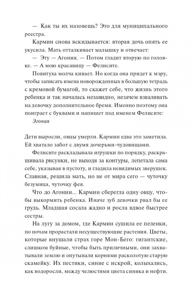 Однажды у жены пастуха рождаются две дочери. Агония — ведьма, чьи слова обращаются насекомыми, и Фелисите — проводница призраков, которая помогает им договорить несказанное и уйти. Однажды обе дочери покидают жену пастуха. Фелисите обучается мастерству чаеслова, Агония же сбегает в лес от ненависти и неприятия матери. Однажды жена пастуха — Кармин — умирает. Тогда ее дочерям приходится встретиться вновь, чтобы разобраться в секретах, которые скрывала их мать, и узнать, кем же на самом деле была эта многоликая женщина. И где теперь обитает ее призрак — на улочках Ниццы, в долине Чудес или заброшенных деревушках Прованса?..