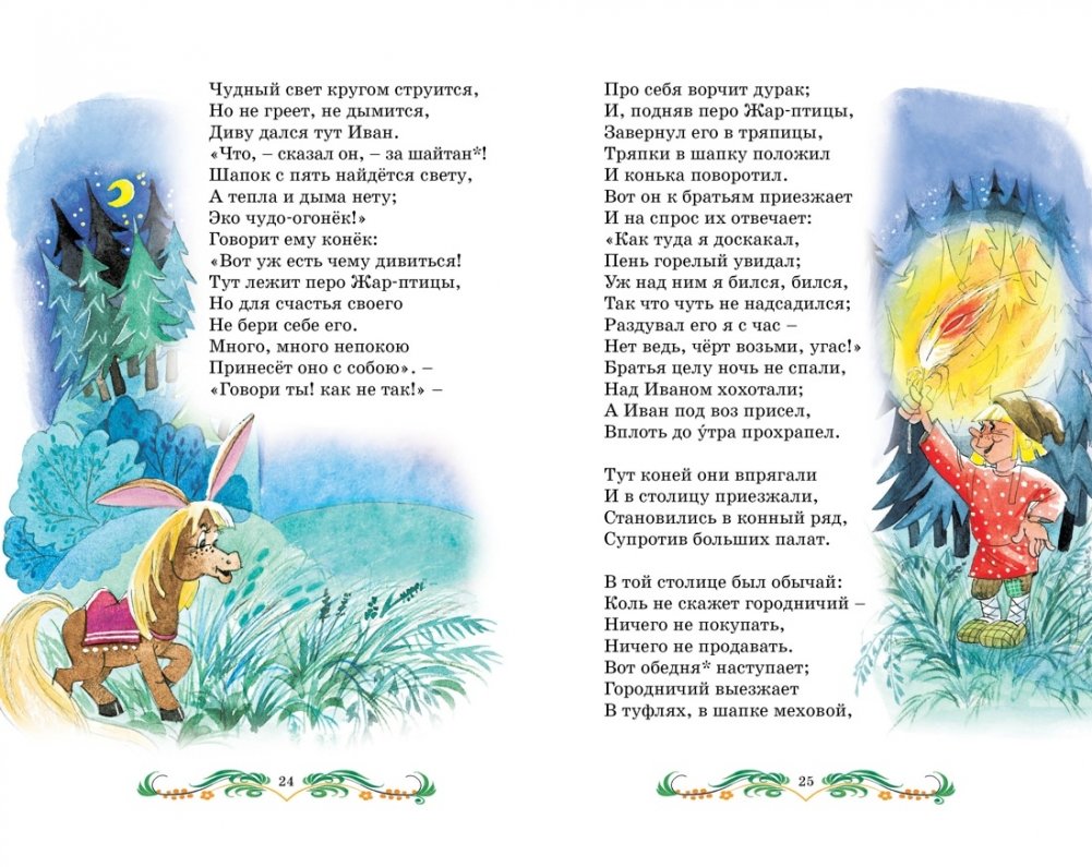 «Конёк-горбунок» – знаменитая сказка Петра Ершова, которую школьники читают с большим удовольствием. В ней высмеивается глупость царя и бояр, а Иван – крестьянский сын с помощью волшебного конька-горбунка побеждает своих врагов, потому что на его стороне правда, добро и справедливость. Ему предстоит поймать Жар-птицу, отправиться на поиски Царь-девицы и пережить множество других захватывающих приключений.