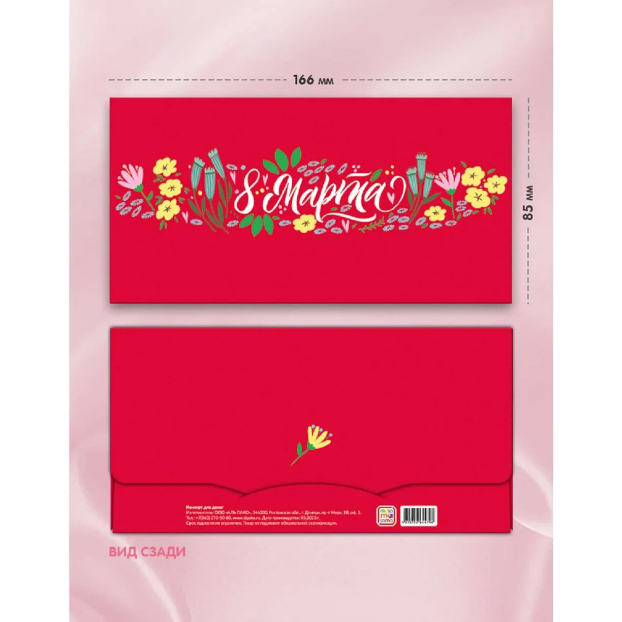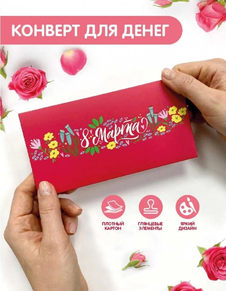 Денежный конверт - универсальный подарок для любого праздника. Открытка для денег предназначена для поздравления с 8 Марта воспитателя, учителя или врача. Поздравительные открытки имеют уникальный авторский дизайн – нежная весенняя композиция с тюльпанами и весенними цветами. Все конверты содержат надпись, посвящённую 8 Марта, а тюльпаны являются символом счастья, красоты и нежности и главного женского праздника. Открытки выполнены из плотного картона, а значит, не порвутся и не помнутся во время вручения и хранения.