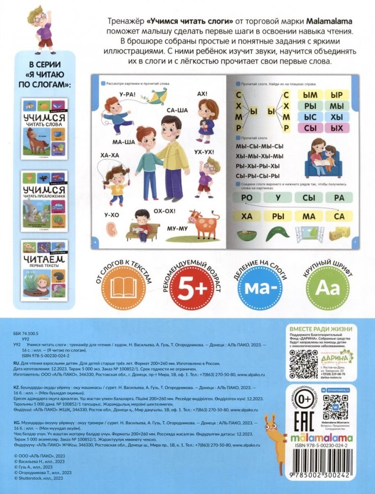 Тренажёр "Учимся читать слоги" от торговой марки Malamalama поможет малышу сделать первые шаги в освоении навыка чтения. В брошюре собраны простые и понятные задания с яркими иллюстрациями. С ними ребёнок изучит звуки, научится объединять их в слоги и с лёгкостью прочитает свои первые слова.