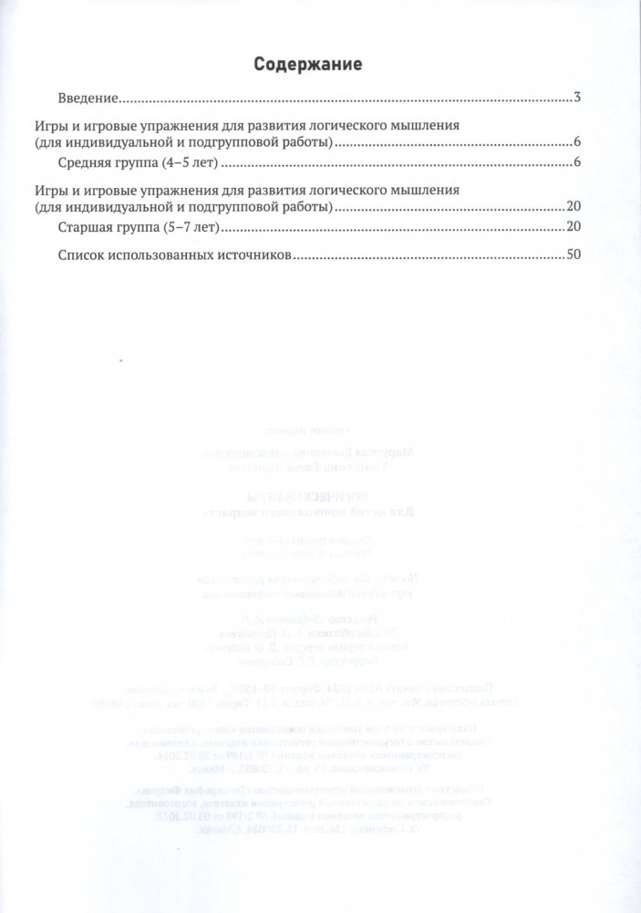 В данном пособии представлены игры и игровые упражнения для детей дошкольного возраста, направленные на развитие логического мышления. Предложенные игры помогут ребенку освоить такие логические операции, как сравнение, обобщение, классификация, систематизация, смысловое отнесение и др.