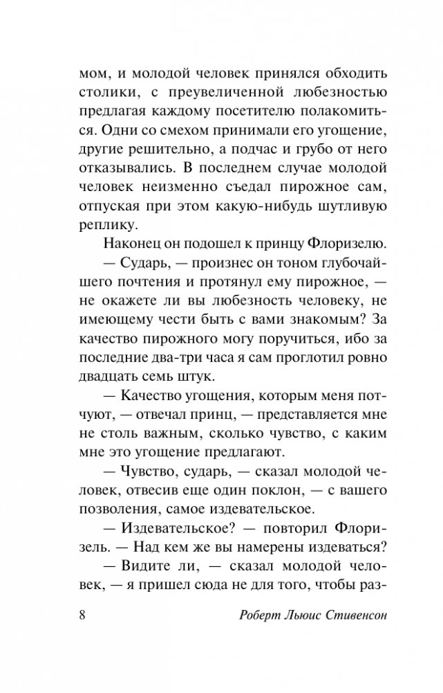 Добро пожаловать в мир удивительных приключений и хитро задуманных преступлений, головокружительных погонь, смертельных дуэлей и умопомрачительно смешных диалогов – мир, в котором викторианский "рыцарь без страха и упрека" принц Флоризель и его верный друг полковник Джеральдин ведут смертельную схватку со Злом, защищая несправедливо обиженных, – и ни на минуту не теряют при этом достойного истинных джентльменов чувства юмора.