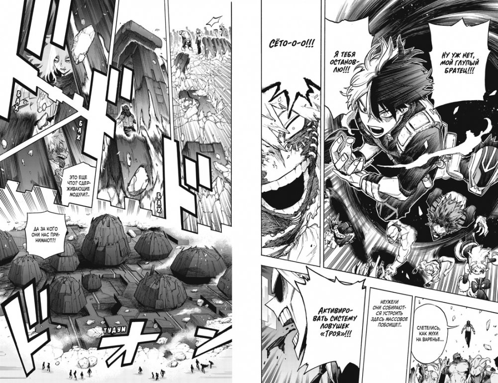До решающей схватки со злодеями во главе с могущественным Всеми За Одного остались считанные дни. Обе стороны затаились с целью перегруппироваться и выработать план действий. Профи продумывают каждый шаг, но неизвестно, сколько вражеских шпионов затаилось в стенах Юэй. К счастью, на этот раз исход битвы зависит не только от топовых героев и Мидории. Всем ученикам геройской академии предстоит сыграть в сражении свою особенную роль – Тодороки, Бакуго, Иде и даже Юго Аояме. Вы еще не раз услышите их имена. Жаль только, любой даже самый продуманный план имеет свойство сильно изменяться, когда дело доходит до реальной встречи с противником…