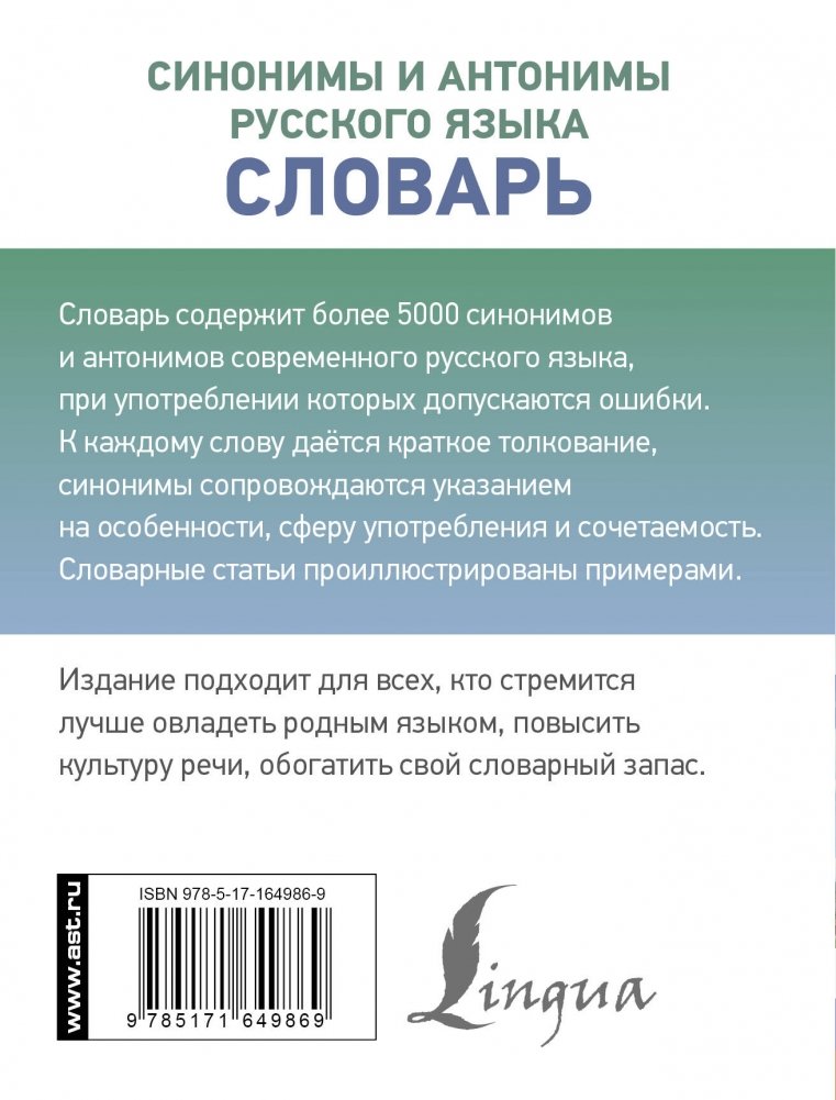 Издание подходит для всех, кто стремится лучше овладеть родным языком, повысить культуру речи, обогатить свой словарный запас.