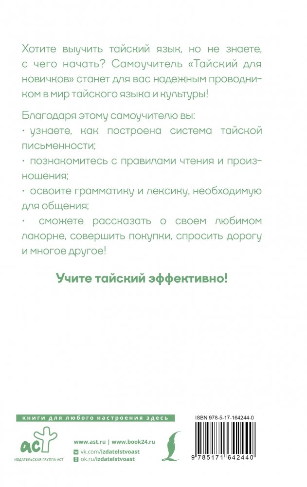 В данном самоучителе вы найдете все необходимое для того, чтобы освоить основы тайского языка: изучите произношение и грамматику, ознакомитесь с системой письма, узнаете общеупотребительную лексику, а главное — приобретете необходимые знания для общения на бытовые темы.