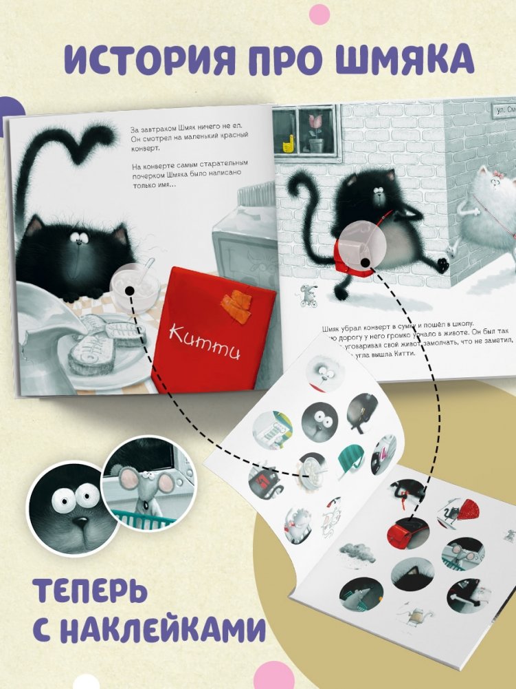 Котёнку Шмяку нравится одна девочка — даже больше, чем его любимые рыбные палочки и мороженое! Она особенная: у неё самые мягкие в мире лапки и пушистая шёрстка, а зовут её Китти. Вот только Шмяк, кажется, ей совсем неинтересен, да ещё противный Шип претендует на внимание Китти. Что же делать Шмяку?
