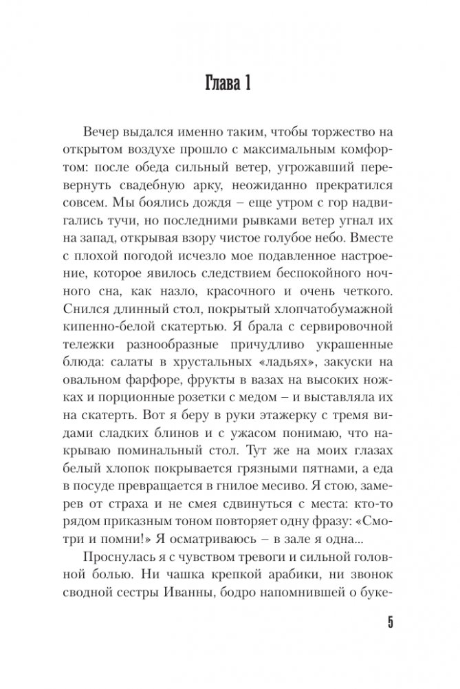 Когда накануне свадьбы сестры тебе снится дурной сон, да и само ее решение выйти замуж ты считаешь слишком торопливым, настроение в день торжества оставляет желать лучшего. И когда ты, устав от свадебного шума, уединяешься, вдруг до твоего слуха долетают звуки выстрелов.