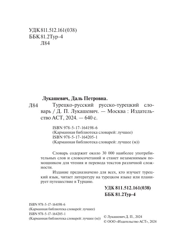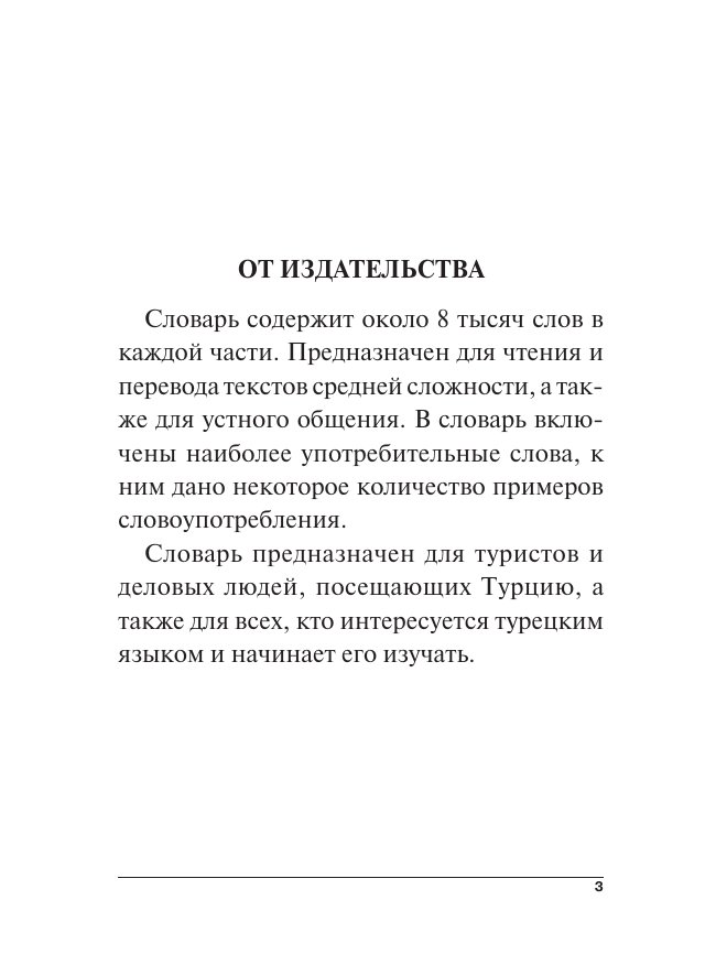 Издание предназначено для всех, кто изучает турецкий язык, читает литературу на турецком языке или планирует путешествие в Турцию.