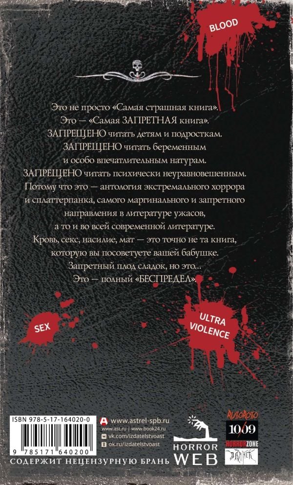 Потому что это — антология экстремального хоррора и сплаттерпанка, самого маргинального и запретного направления в литературе ужасов, а то и во всей современной литературе. Кровь, секс, насилие, мат — это точно не та книга, которую вы посоветуете вашей бабушке.