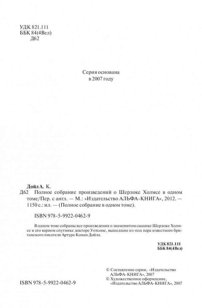 В одном томе собраны все произведения о знаменитом сыщике Шерлоке Холмсе и его верном спутнике докторе Уотсоне, вышедшие из-под пера известного британского писателя Артура Конан Дойла.