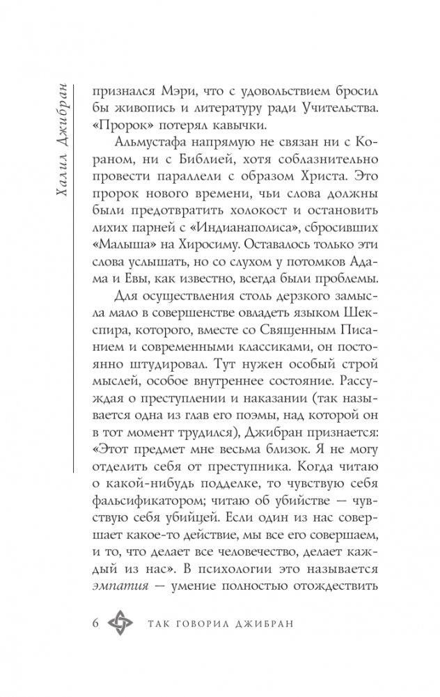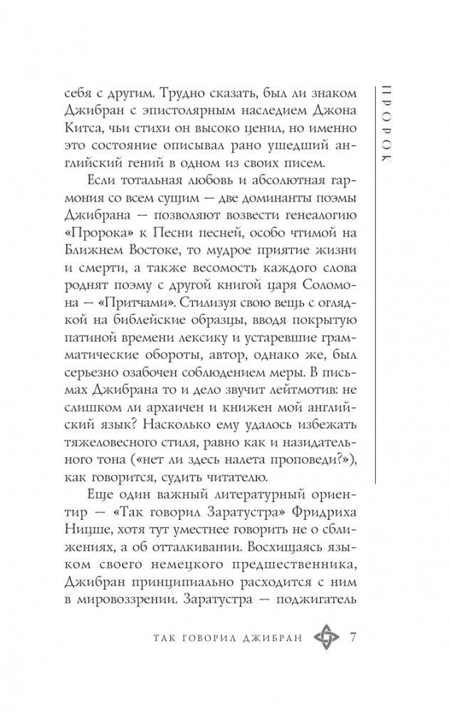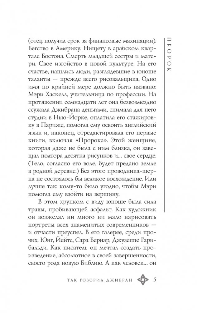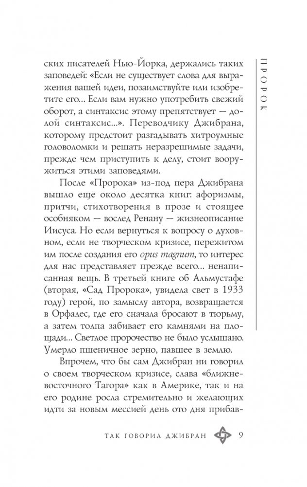 Пророк Альмустафа, двенадцать лет прожив в чужом для него городе Орфалес, собирается вернуться домой. По дороге его останавливает группа местных жителей, их интересует мнение пророка о любви и смерти, свободе и власти, добре и зле. Лаконичные, но вместе с тем всеобъемлющие рассуждения Альмустафы представлены в виде притч. Они не только дают ответы на вопросы горожан, но и находят отклик в сердце любого человека.