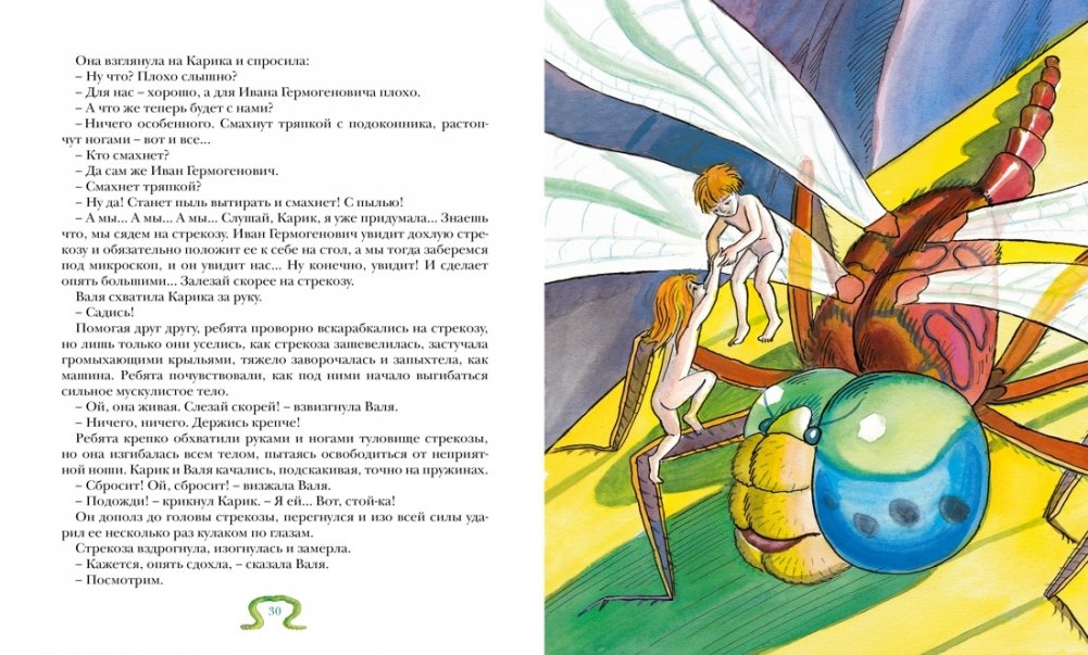 Юные герои повести Карик и Валя волшебным образом оказываются в удивительном мире природы и животных. Так начинается эта полная загадок, тайн и невероятных открытий приключенческая история, в которой трава оказывается настоящими джунглями, ручеёк – бурной рекой, а насекомые – кровожадными чудовищами. И только смекалка, храбрость и взаимовыручка помогут ребятам преодолеть все трудности и опасности…