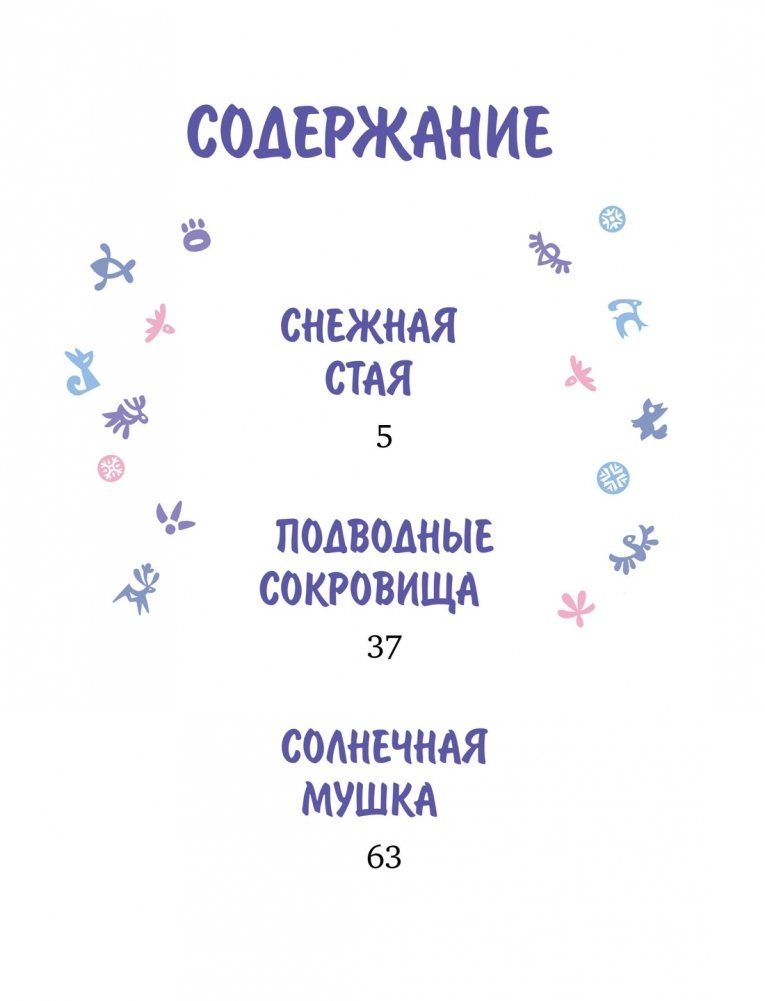 Герой знаменитого мультфильма белый медвежонок Умка живёт в прекрасной и суровой Арктике. Вместе со своими друзьями полярной волчицей Ильмой, розовой чайкой Пычиком, нерпой Корой и мальчиком Тайкэ он исследует загадочную природу севера и открывает тайны окружающего мира. Приключения Умки продолжаются. Белый медвежонок и его верные друзья столкнутся с необычной стаей, отправятся на поиски сокровищ и поиграют в догонялки с новым другом. В книгу вошли три истории из популярного сериала «Умка»: «Снежная стая», «Подводные сокровища», «Солнечная мушка».