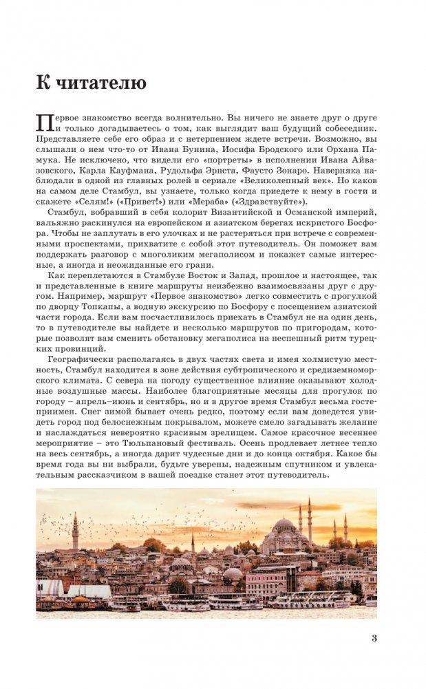 На страницах этой книги вы найдете описание интереснейших маршрутов по Стамбулу. Крупнейшему городу Турции, раскинувшемуся на европейском и азиатском берегах пролива Босфор. Этот путеводитель поможет вам поддержать разговор с многоликим мегаполисом и покажет самые интересные, а иногда и неожиданные его грани. В путеводителе вы найдете и несколько маршрутов по пригородам, которые позволят вам сменить обстановку мегаполиса на неспешный ритм турецких провинций.
