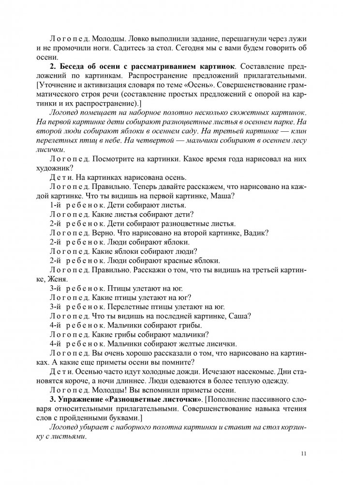 Книга содержит подробное изложение хода подгрупповых занятий логопедических занятий и описание методических приемов, используемых логопедом, цели и задачи в соответствии с заданной лексической темой. Каждое занятие содержит от шести до десяти этапов: игры, задания и упражнения для развития общих речевых навыков, слухового и зрительного внимания и восприятия, формирования и совершенствования лексического состава языка и грамматического строя речи, развития связной речи и речевого общения, фонематических представлений и навыков звукового анализа и синтеза, мимической, артикуляционной, тонкой, общей моторики и т.д. Для логопедов, воспитателей логопедических групп ДОУ.