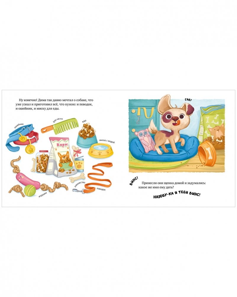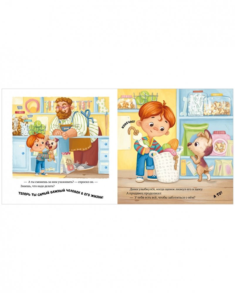 Книжка-картинка в мягкой обложке «Будь моим другом!» написана для детей, которые мечтают о щенке. Она поможет понять, что собака в мечтах и в реальности — это очень разные собаки. Вместе с юным героем книги, ребенок увидит, что животное в доме — это большая ответственность, ведь каждый день ему необходимы внимание и забота.