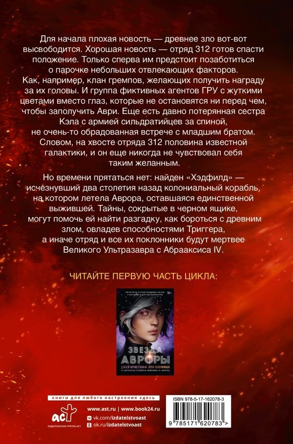 Для начала плохая новость — древнее зло вот-вот высвободится. Хорошая новость — отряд 312 готов спасти положение. Только сперва им предстоит позаботиться о парочке небольших отвлекающих факторов. Как, например, клан гремпов, желающих получить награду за их головы. И группа фиктивных агентов ГРУ с жуткими цветами вместо глаз, которые не остановятся ни перед чем, чтобы заполучить Аври. Еще есть давно потерянная сестра Кэла с армией сильдратийцев за спиной, не очень-то обрадованная встрече с младшим братом. Словом, на хвосте отряда 312 половина известной галактики, и он еще никогда не чувствовал себя таким желанным. Но времени прятаться нет: найден "Хэдфилд" — исчезнувший два столетия назад колониальный корабль, на котором летела Аврора, оставшаяся единственной выжившей. Тайны, сокрытые в черном ящике, могут помочь ей найти разгадку, как бороться с древним злом, овладев способностями Триггера, а иначе отряд и все их поклонники будут мертвее Великого Ультразавра с Абрааксиса IV.