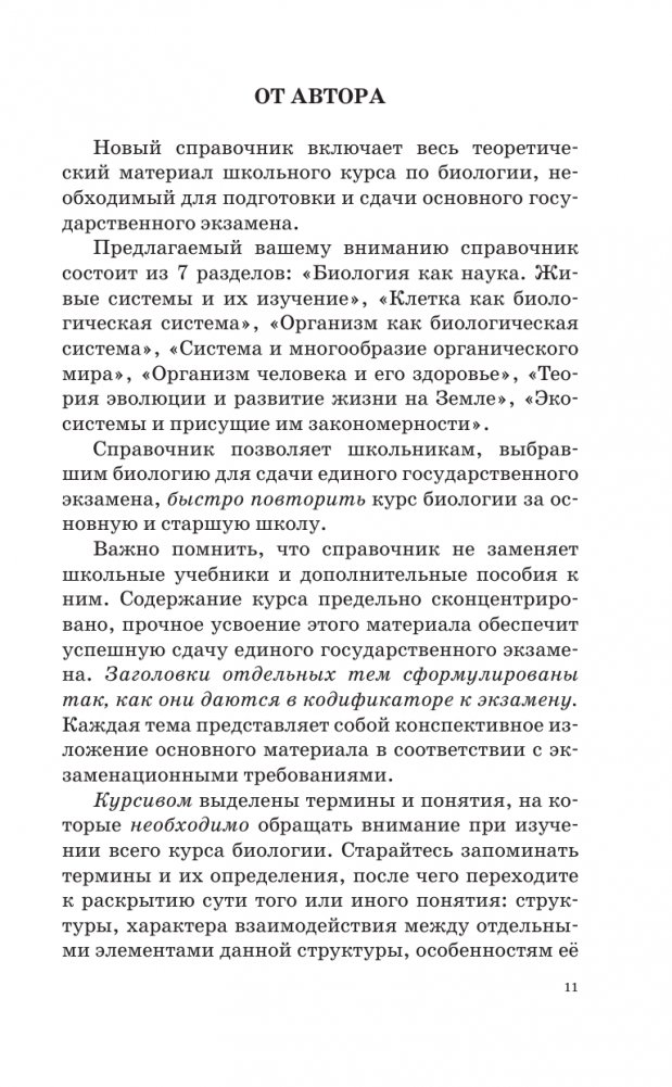 Пособие может быть использовано учащимися для подготовки к ЕГЭ и самоконтроля, а учителями — для подготовки учащихся средней школы к итоговой аттестации по биологии.