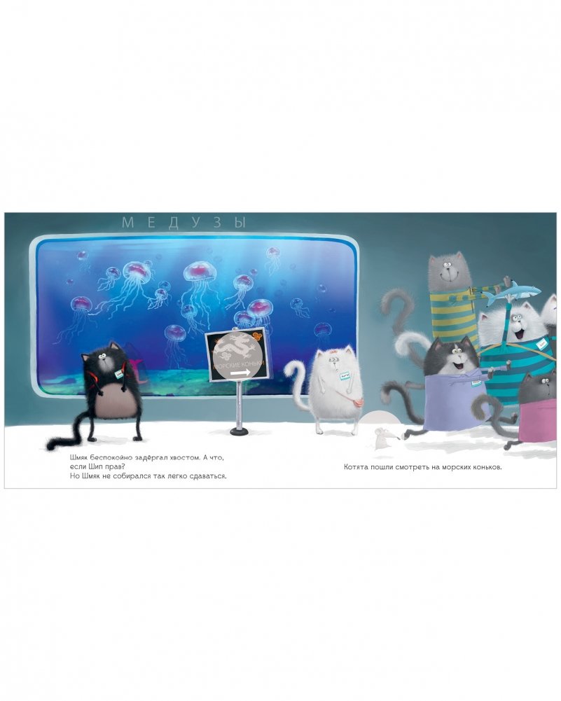Класс Шмяка отправился на экскурсию в океанариум. Увы, котёнок не успел занять в школьном автобусе место возле Китти. Как же теперь привлечь её внимание? Может, блеснуть своими знаниями о подводных обитателях? Но что делать, если медузы сделаны вовсе не из мармелада, а рыбы-коровы совсем не дают молока? Удастся ли Шмяку завоевать внимание и увидеть улыбку на мордочке любимой Китти? Скорее приступай к чтению!