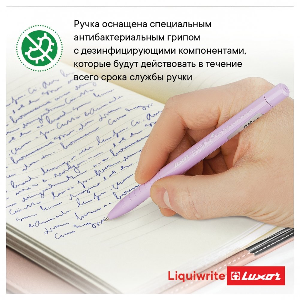 Ручка шариковая Luxor "Liquiwrite" синяя, 0,7 мм, с антибактериальным грипом, корпус ассорти. Арт. 2030P/50DU/19410P/50DU