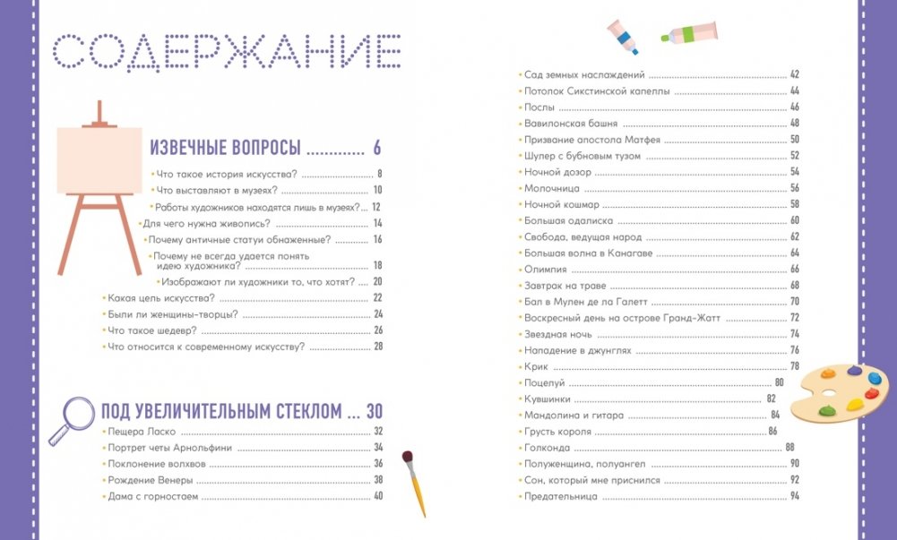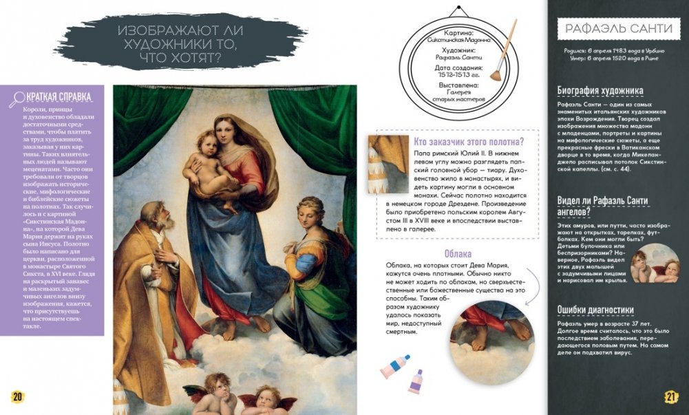 Что такое шедевр? Какие картины выставляют в музеях? Изображают ли художники то, что хотят? Когда возникло искусство? На страницах этой книги вы увидите и самые знаменитые картины мира, и арт-объекты современных творцов. А еще познакомитесь с биографиями художников и особенностями их стиля, узнаете про разные техники живописи, жанры изобразительного искусства, рассмотрите ключевые образы произведений, а также прочитаете про неразгаданные тайны известных полотен. Эта книга — проводник в мир искусства. Благодаря ей вы станете знатоком живописи!