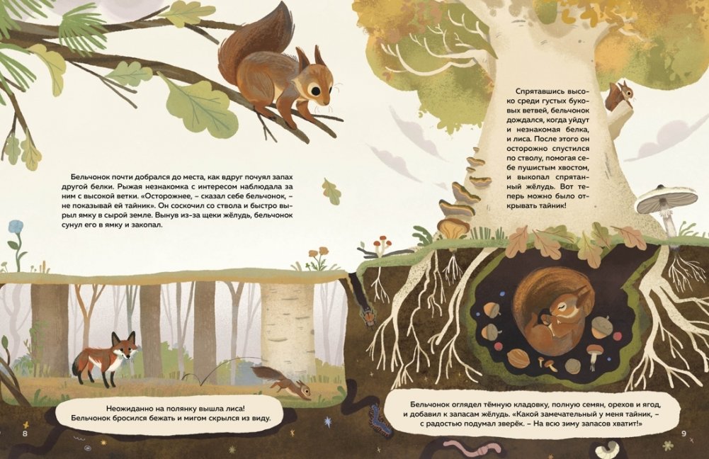 На прогулке по лесу смотри во все глаза и внимательно слушай, ведь каждое животное или растение может поведать тебе свою удивительную историю! Например, кто расскажет о чудесном превращении из гусеницы в бабочку лучше, чем сама бабочка? А кому лабиринт ходов под землёй известен лучше, чем кроту? Открыв этот атлас, ты познакомишься с разными обитателями леса. Посмотри, как пчёлы собирают с цветов пыльцу, узнай, зачем белки делают запасы орехов на зиму и как бобры строят плотины, пробегись по лесным тропинкам вместе с шустрыми бурундуками и найди нору лисы.