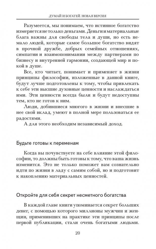 Да-да! Это знаменитые принципы философии Наполеона Хилла — той самой, на которую молятся миллионеры! Именно она сделала книгу «Думай и богатей» величайшим бестселлером в истории. Это практические советы, которые точно указывают вам, что и как надо делать, если вы хотите разбогатеть. Здесь изложены 13 законов, помогающих делать деньги. Они необходимы каждому, кто хочет превратить свои мечты в их денежный эквивалент.