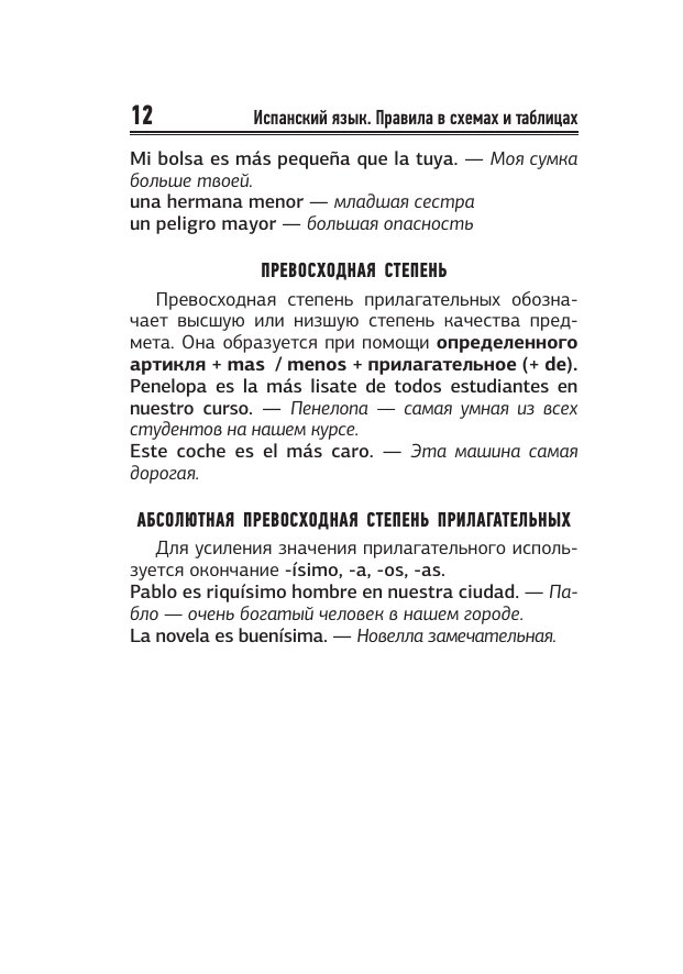 В данном пособии представлены все основные разделы грамматики, рассмотрены наиболее важные и сложные аспекты. Материал представлен в четких и наглядных схемах, что способствует быстрому и качественному усвоению. Пособие станет незаменимым помощником при изучении испанского языка, по нему легко и учить, и повторять.