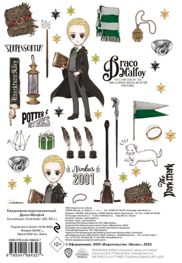 Драко Малфой. Ежедневник недатированный. Коллекция “Cute kids” (А5, 64 л., цветной блок)