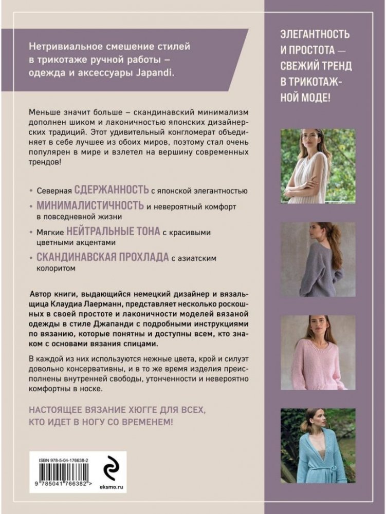 В книге — целая коллекция роскошных моделей вязаной одежды, которые просто созданы для тех, кто хочет быть на волне моды. Автор книги — Клаудиа Лаерманн, выдающийся немецкий дизайнер и вязальщица, дает подробные инструкции по вязанию, которые понятны и доступны всем, кто знаком с основами вязания спицами.
