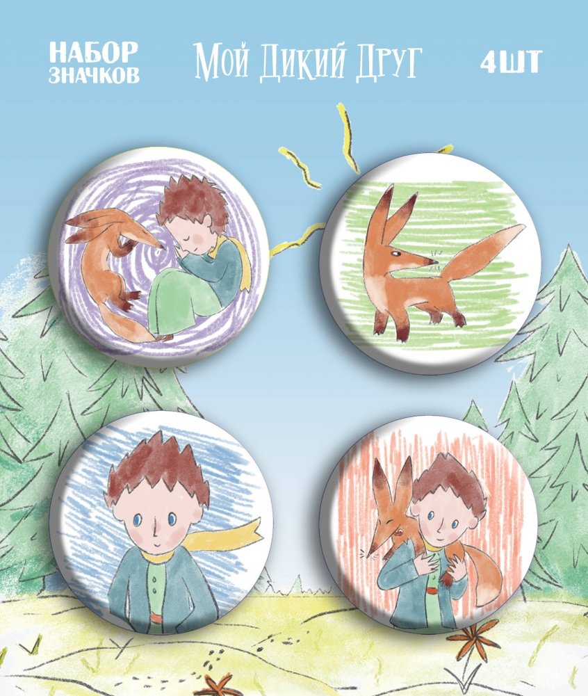 Значки Маленький принц и Лис дополнят любой ваш образ. Диаметр металлических закатных значков 3,8 см. Благодаря удобной булавке, значки безопасно крепятся на рюкзак и одежду. Набор значков сделан совместно с "Яндекс студией" ("Кинопоиск") к выходу фильма "Мой дикий друг". Это трогательная история о мальчике, спасающем лисенка от браконьеров. Главный герой читает своему новому другу притчу "Маленький принц" и погружается с головой в сказочный мир Экзюпери. В главных ролях Юлия Александрова, Юрий Колокольников, Михаил Башкатов, Евгений Шварц и другие