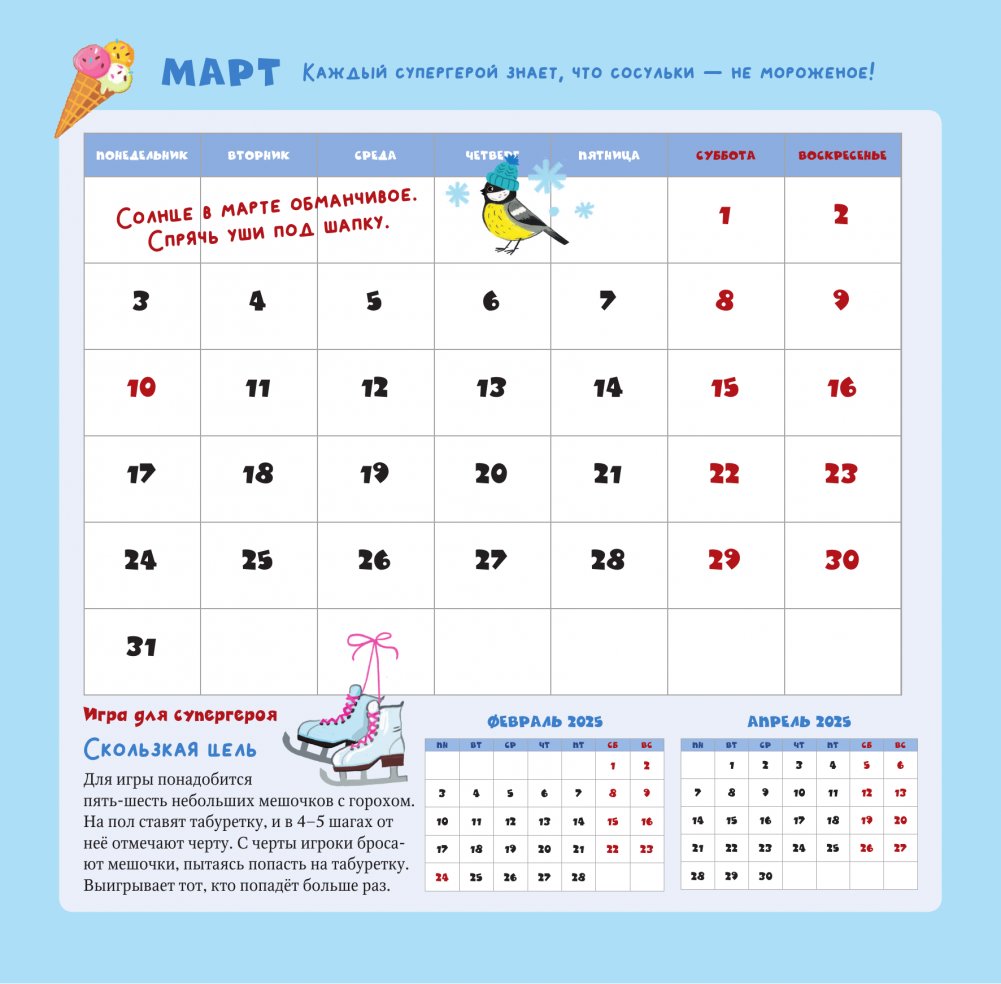 Полезный и увлекательный календарь-планер поможет ребёнку выучить важные правила безопасности. Как нужно перходить дорогу? Почему опасны электроприборы? Где можно кататься на велосипеде и самокате? Чем таблетки отличаются от конфеток? Эти и многие другие важные вопросы задают герои целых 12 аудиосказок, которые доступны по QR-кодам. Вместе с весёлыми зверятами так легко и просто понять и выучить важные правила безопасности! Подвижные игры на каждый месяц помогут закрепить правила и отвлекут от гаджетов. В конце года маленькие почемучки получат диплом популярной Школы безопасности Сергея Киселева.