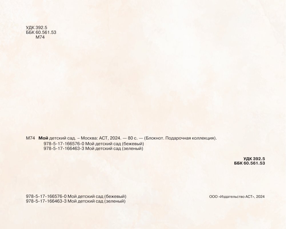 Период, когда ребенок ходит в десткий сад, является для него фундаментальным. Становление малыша как личности начинается именно в этих светлых стенах, в которых воспитатели учат его первым шагам в жизни, а другие ребята - общению. В этом альбоме вы найдете множество поводов запечатлеть самые ценные моменты, случивишеся с вашим ребенком в детском саду: первая дружба, первый воспитатель, первые задания и первые занятия. Все, что вам нужно, - лишь иметь под рукой фотоаппарат и обращаться к вашим недавним воспоминаниям. Детский сад - это место, которое ваш ребенок должен запомнить!