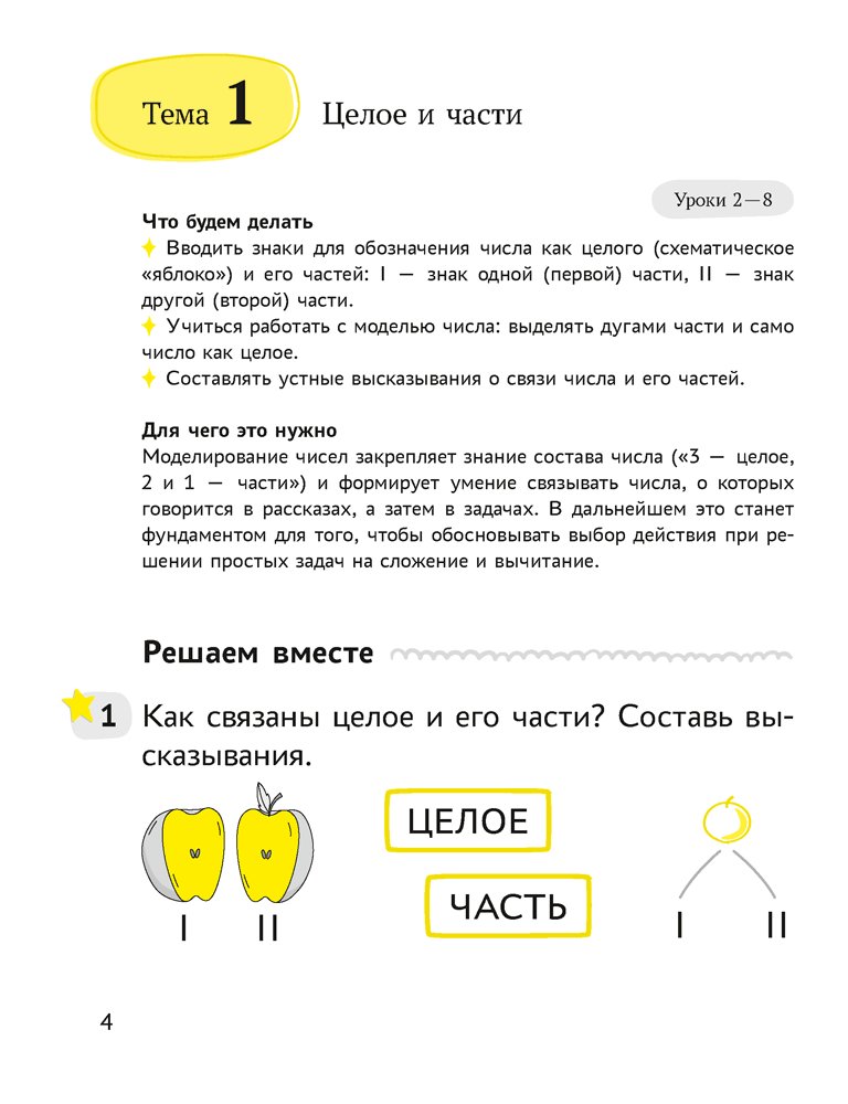 Практикум содержит все необходимые задачи для 1 класса с подробным разбором каждого вида. Пособие научит ребёнка быстро ориентироваться в любой задаче, определять связи между числами, легко переходить от текста задачи к её схеме и безошибочно выбирать действие для решения. Регулярные занятия помогут первокласснику освоить базовые алгоритмы решения, не путать разные виды задач и уверенно решать их.