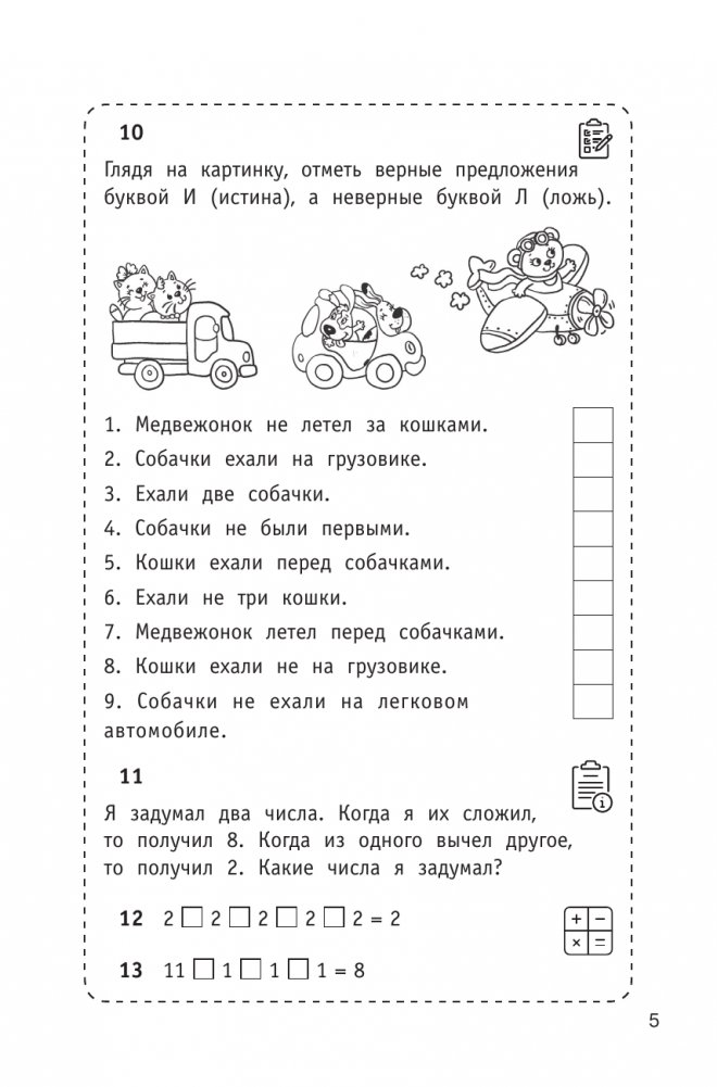 Тренажёр "300 логических задач" разработан известным педагогом-практиком О.В. Узоровой. Книга содержит разнообразные задания: простые и сложные, линейные и разветвлённые, с таблицами, поясняющими забавными иллюстрациями и в виде привычных задач. Первоклассник в простой и понятной форме постигает основные логические алгоритмы: дедукцию, анализ, синтез, метод исключения, законы тождества и противоречия.