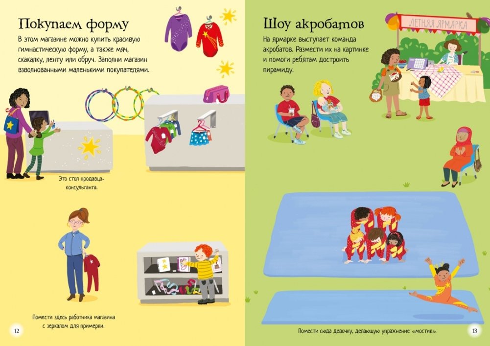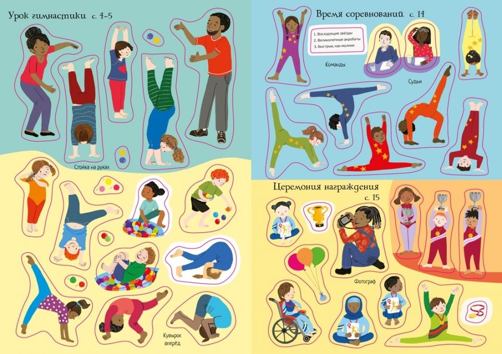 Гимнастика – это весело! Посмотри, как гимнасты отрабатывают такие движения, как мостик, кувырки и стойка на руках, а также побывай на шоу акробатов, на соревнованиях и в цирке. Читаем и играем! Развиваем внимание, воображение, мелкую моторику, художественный вкус и эмоциональный интеллект.