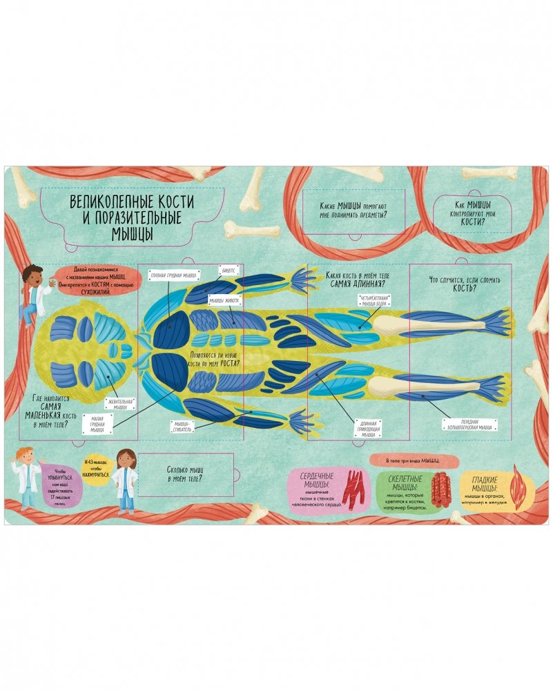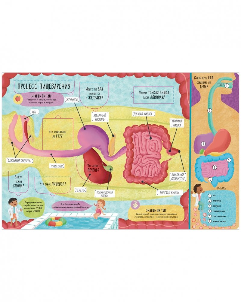 Книга дает простые толкования сложным понятиям, текст специально адаптирован для восприятия ребенка, а красочные иллюстрации помогают наглядно представить устройство человеческого организма, удерживать внимание и интерес. На каждом развороте — несколько вопросов, ответы на которые прячутся под окошками.