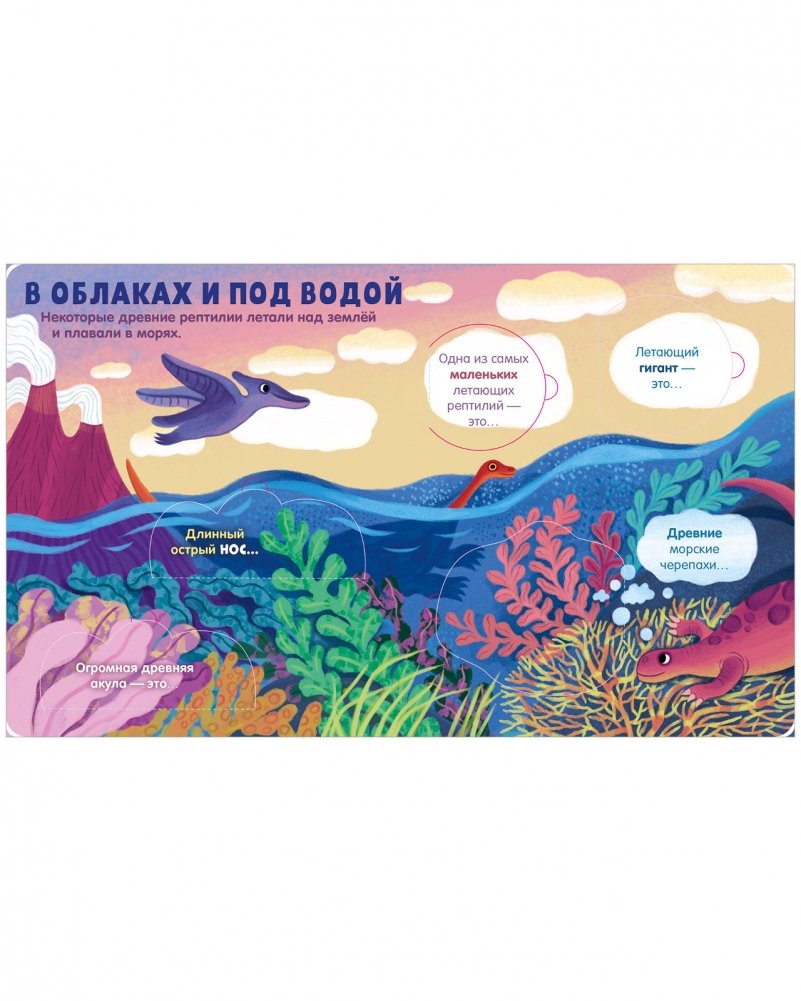 Рассматривайте яркие картинки в книжке «Динозавры», открывайте окошки и запоминайте интересное о доисторических животных!