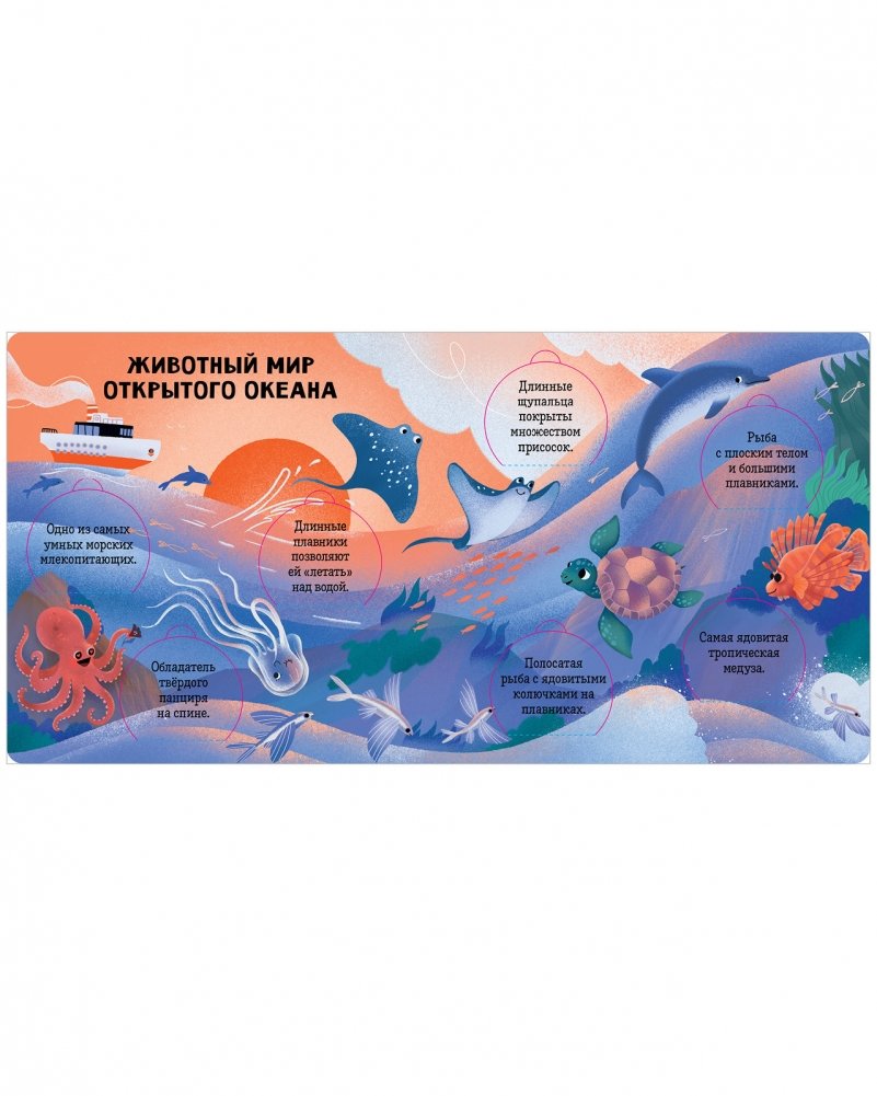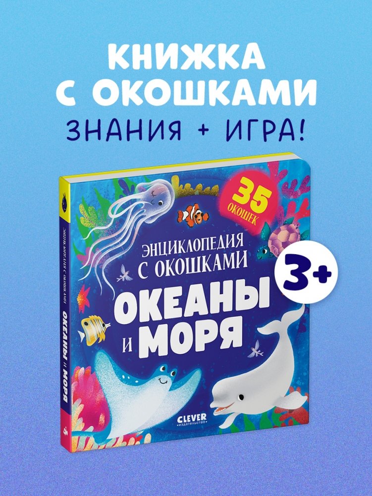 Познавательная книга с интерактивными элементами «Океаны и моря. Энциклопедия с окошками» раскроет тайны подводного мира и ответит на самые интересные вопросы любознательных почемучек.