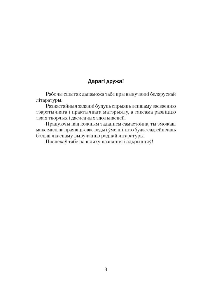 Сшытак падрыхтаваны ў адпаведнасці з праграмай па беларускай літаратуры. Ён дапаўняе вучэбны дапаможнік і змяшчае заданні розных узроўняў складанасці, якія маюць творчы характар, развіваюць здольнасці вучняў. Сшытак дасць магчымасць замацаваць і праверыць набытыя на ўроку веды.
