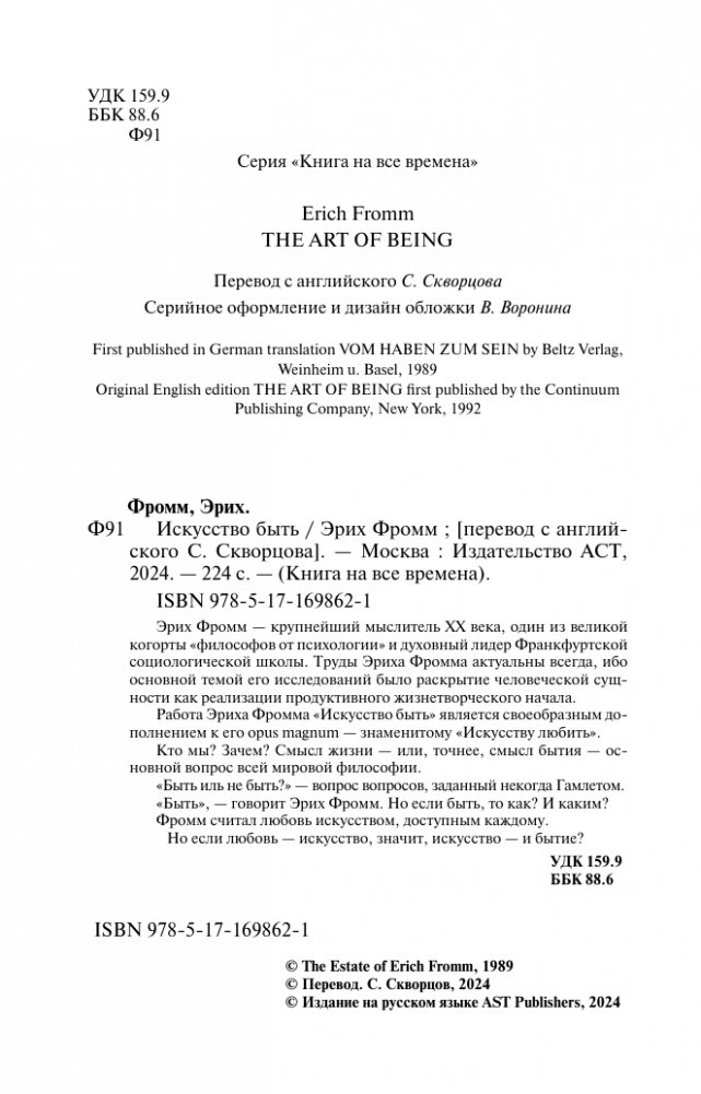 Работа Эриха Фромма "Искусство быть" является своеобразным дополнением к его opus magnum – знаменитому "Искусству любить".