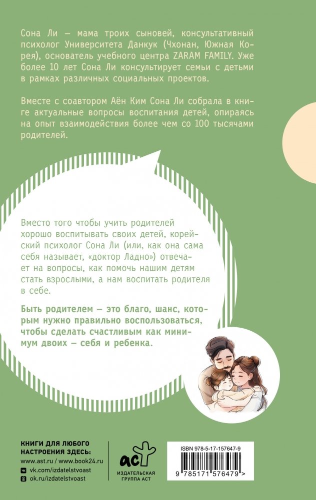 Вместо того, чтобы учить родителей как нужно воспитывать своих детей, корейский психолог Сона Ли (или как она сама себя называет "доктор Ладно") рассказывает, что нужно для того, чтобы помочь нашим детям стать взрослыми. И как воспитать родителя в себе.