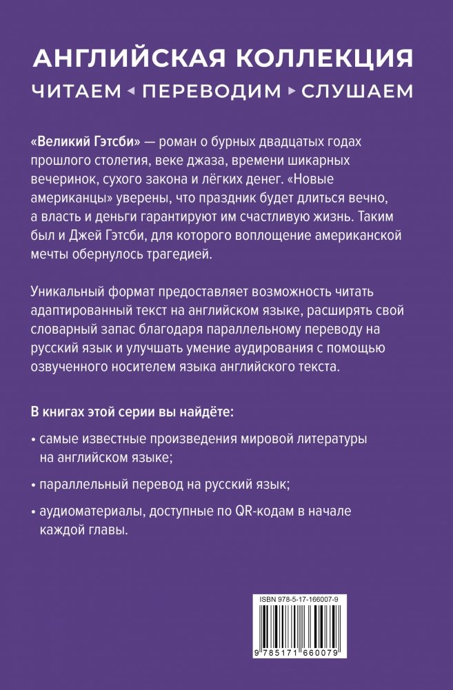 Перед вами вершина творчества американского писателя Ф.С. Фицджеральда — роман "Великий Гэтсби". Текст произведения адаптирован и снабжен параллельным переводом на русский язык.