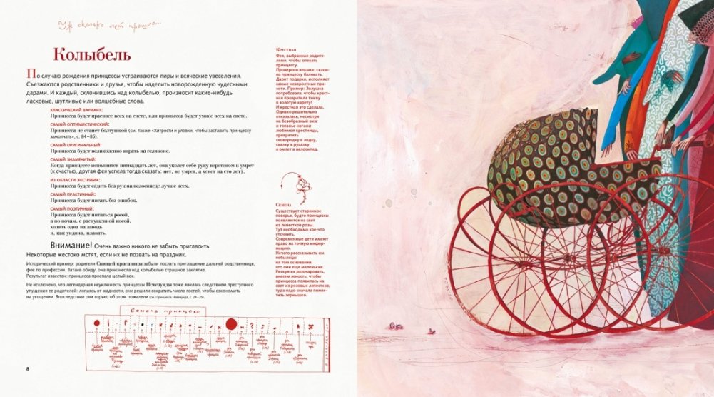 Все сведения о принцессах, пока еще незнаменитых, неизвестных или несправедливо забытых. Остроумный и веселый справочник для настоящих принцесс. Рисунки Ребекки Дотремер — просто шедевры сказочного искусства! В волшебной оболочке, которая выдает себя за серьезную энциклопедию с указателем, словарем и библиографией, спрятаны вполне полезные советы юным фантазерам и взрослым романтикам. Мило и ненавязчиво! Никаких нравоучений, только примеры из жизни Болтилии, Лягушетты, Нувоттакаяявот и других будущих королев со всеми их достоинствами и недостатками.